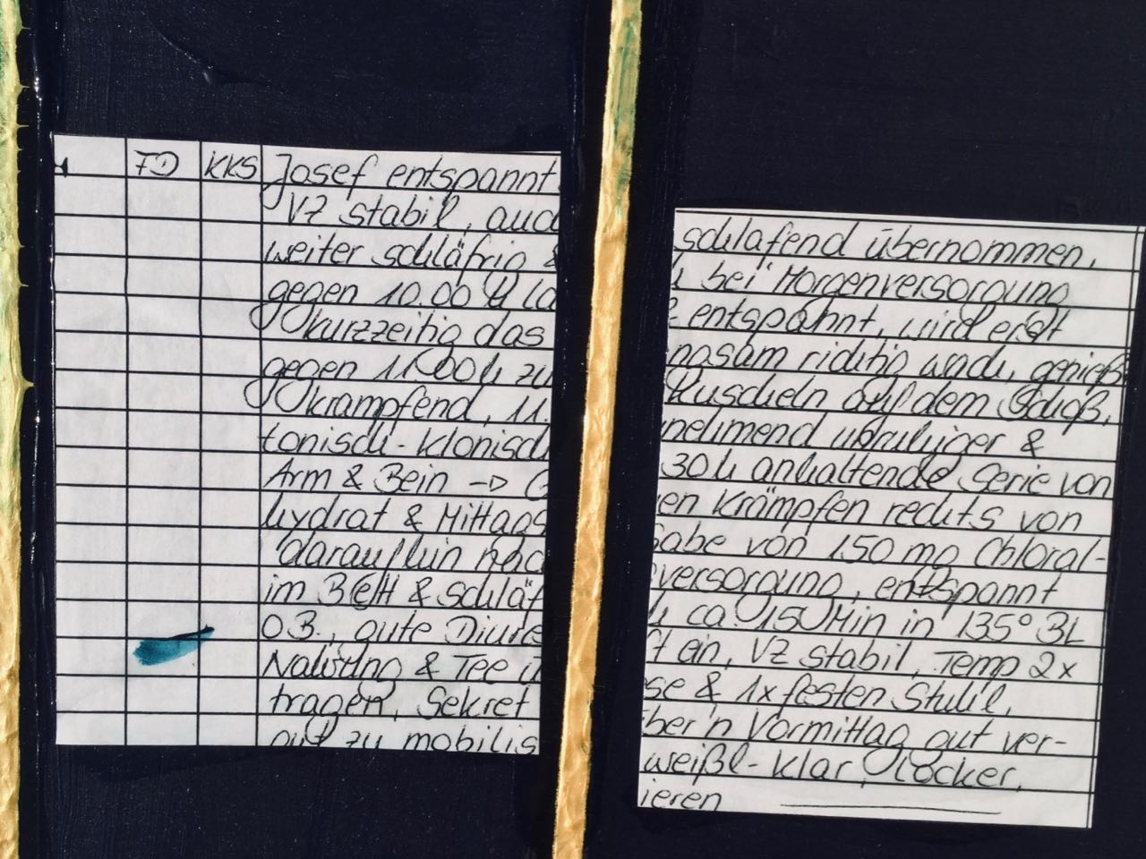 Gegen Mittag gehe ich mit Klara zu Josef. Ins Kinderhospiz. Josef schläft. Ich lege meine Hand auf seinen Kopf. Küsse ihn. Die Schwester kommt zu uns. Sagt, sie hat ihm gerade ein Notfallmedikament gegeben. Josef hat gekrampft. Mir wird es schwer ums Herz. Die Krämpfe. Die blöden Krämpfe. Einatmen und Ausatmen.