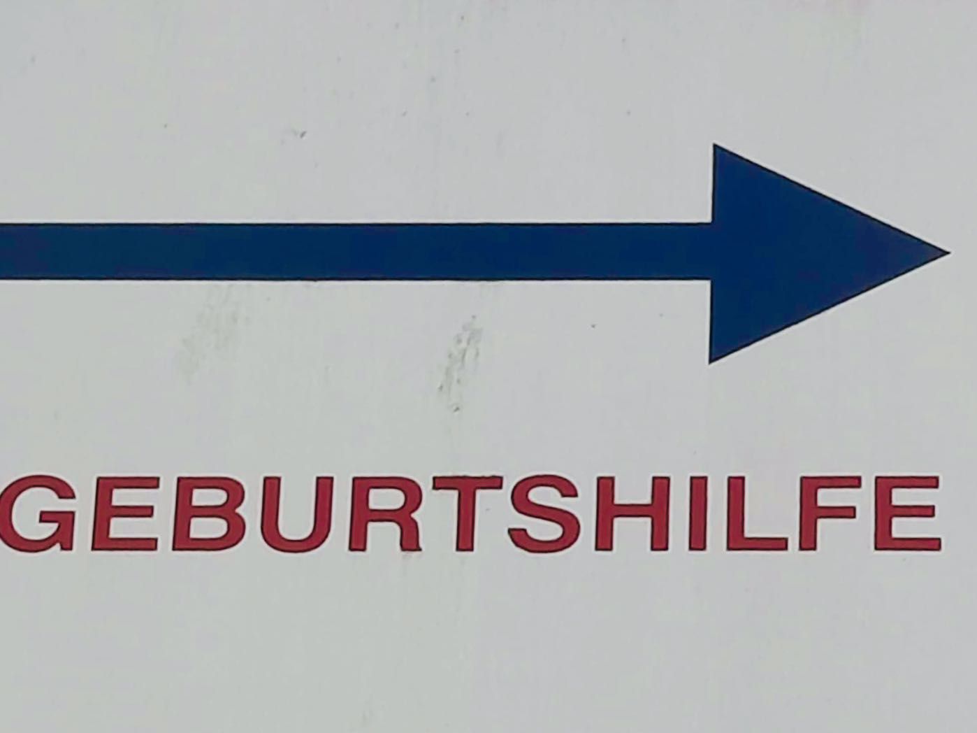 Geburtshilfe steht auf dem Schild. Rechts rum. Damals war es anders. Ein anderer Eingang. Ich folge dem Pfeil. Gehe in das Haus. Erkenne nichts. Ich klingele. Auf der Klingel steht Kreißsaal. Ich bin ganz ruhig.